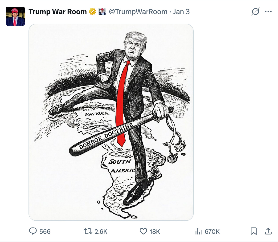 I want to dwell on this section a bit because it is particularly relevant to current global affairs. While Trumps kidnapping of Maduro and impending vassalization of Venezuela is mostly a naked show of force, it is also resonant with a longer pattern.